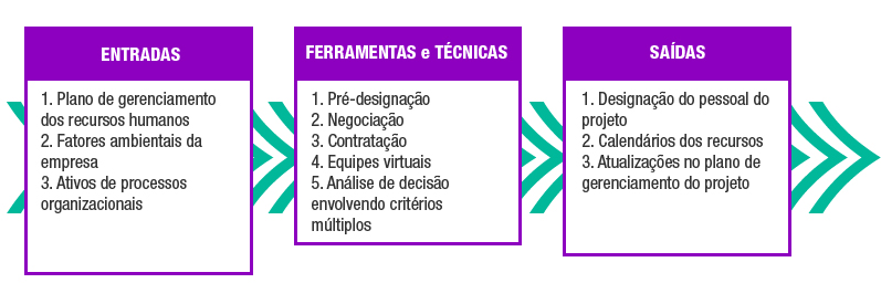 Na imagem estão listadas as entradas, as ferramentas e técnicas e as saídas desse processo.