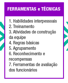 Abaixo estão descritas as ferramentas e técnicas do processo Desenvolver a Equipe do Projeto.