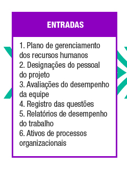 Abaixo estão descritas as entradas do processo Gerenciar a Equipe do Projeto.