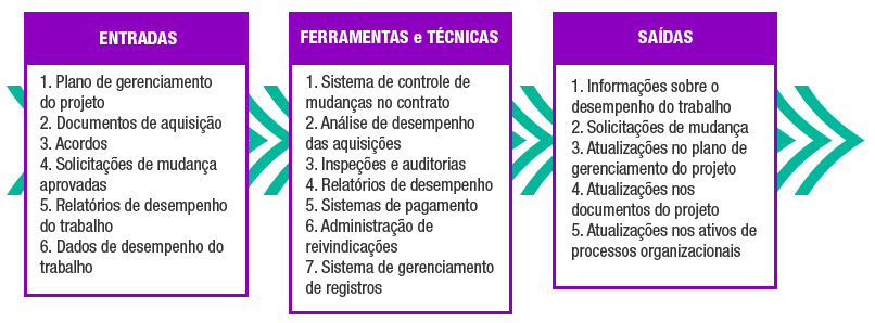 A imagem abaixo apresenta as entradas, ferramentas e técnicas e saídas desse processo.