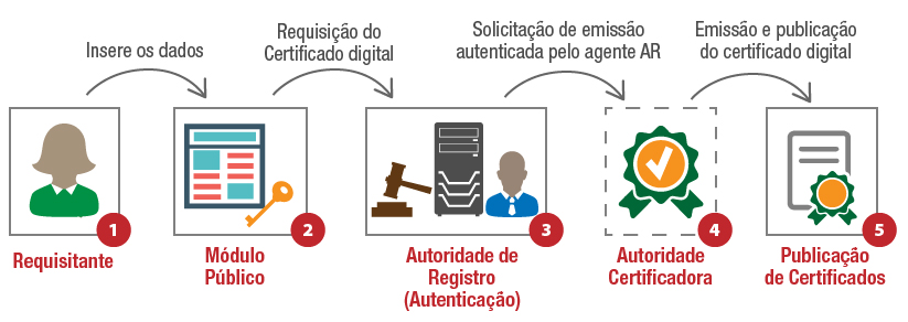 Para adquirir um certificado digital, o interessado deve dirigir-se a uma autoridade certificadora, onde será identificado mediante a apresentação de documentos pessoais ou documentos da empresa, no caso de registro de pessoa jurídica.