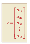 Nesta representação cada dado é determinado por um índice na forma aij, sendo “a” a variável, “i” a linha e “j” a coluna. No caso dos vetores, o índice j é constante e igual a 1 e, portanto, pode ser desconsiderado. A tabela a seguir apresenta a representação dos elementos de um vetor.