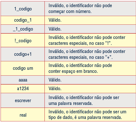 palavras reservadas em um pseudocódigo: inicio, declare, fim, literal,