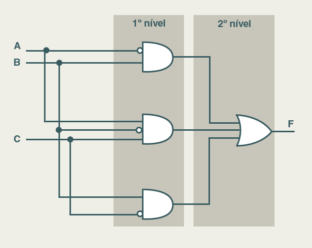 circuito da figura acima visualizamos duas portas de duas entradas e duas