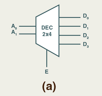 | Poderemos escrever novamente esta tabela de uma maneira mais enxuta, escrevendo em uma linha que, quando E=0, os valores das entradas A1 e A0 não interessam (=don’t cares de entrada):
