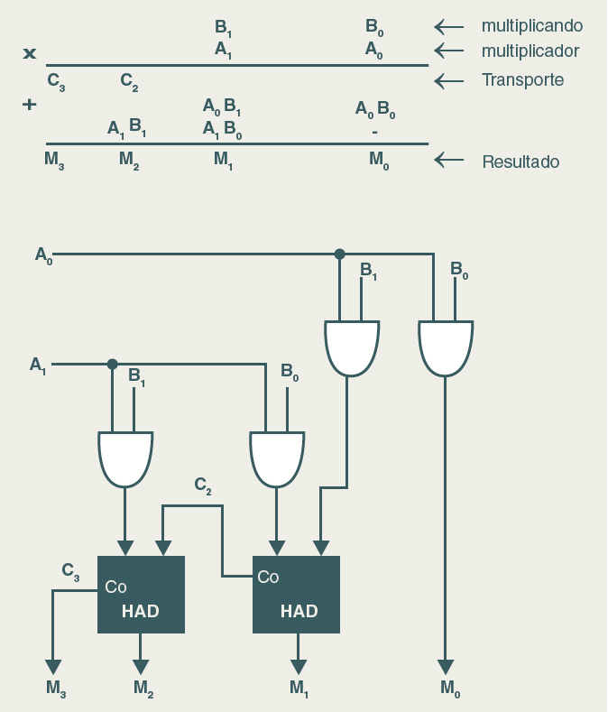 de maneira semelhante. Um bit do multiplicador é operado por um