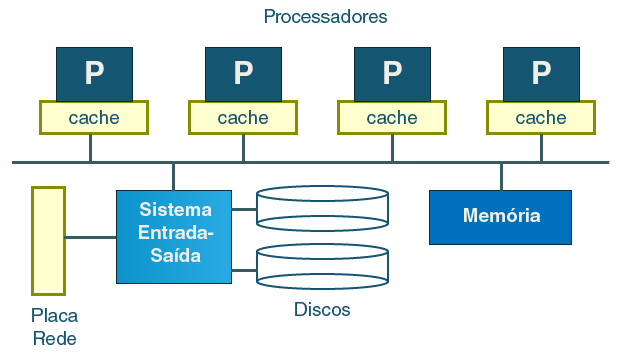 | 5 - NUMA: vantagens e desvantagens Dentre as principais vantagens de um sistema NUMA destacamos o desempenho efetivo em níveis de paralelismo mais altos que o fornecido por sistemas SMP, sem necessidade de grandes mudanças no software. Com vários “nós” NUMA, o tráfego no barramento em qualquer “nó” estará limitado à demanda que esse barramento é capaz de suportar. Contudo, caso haja um grande número de acessos a posições de memória localizadas em “nós” remotos, o desempenho cairá sensivelmente. Mas tudo isso pode ser minimizado com uso da memória cache e também de memória virtual (visto anteriormente).