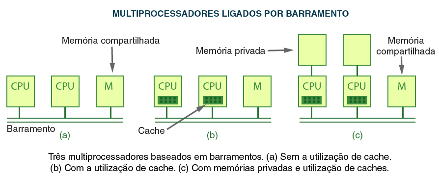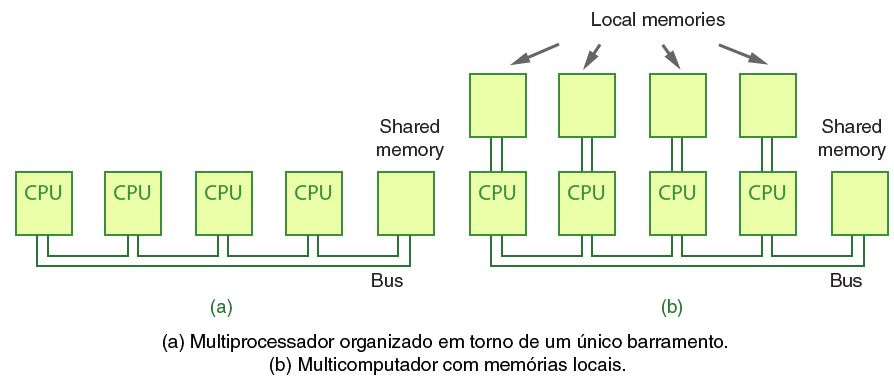 A interconexão entre processadores e memória pode ser efetuada por meio de uma barra, que permite a configuração compartilhada.