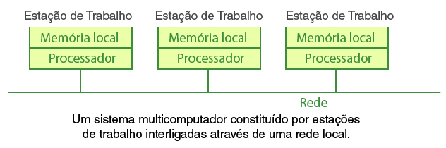 Os multicomputadores também podem ser ligados em barramento e por comutação conforme as figuras que se seguem: