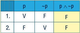 Dica: aproveitando as tabelas verdades construídas neste módulo para ~(p∧~p) e p∧~p, basta criar uma nova coluna ao final de cada tabela e aplicar a operação de negação. Para relembrar, clique aqui e veja as tabelas verdades de ~(p∧~p) e p∧~p. Basta agora seguir a dica e comprovar a teoria que afirma que a negação de uma tautologia é uma contradição e vice-versa. |