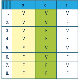 Tabela verdade de Q: (p ∧ q) → r