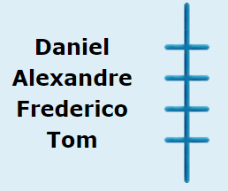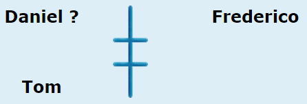 O problema não indica se Daniel e Frederico são igualmente ricos. Então eles são representados no diagrama com um ponto de interrogação entre eles, e ambos estão situados acima de Tom.