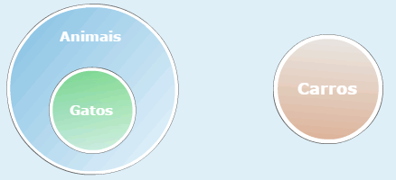 Faça um diagrama de Venn mostrando a relação entre gatos, animais e carros, usando um círculo para representar os gatos, outro para representar os animais e um terceiro para representar os carros.