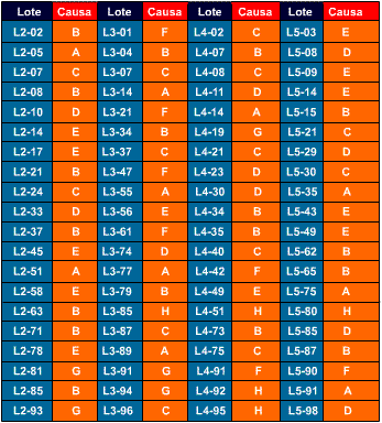 Vamos tomar como exemplo a tabela que mostra as causas dos defeitos em peças.